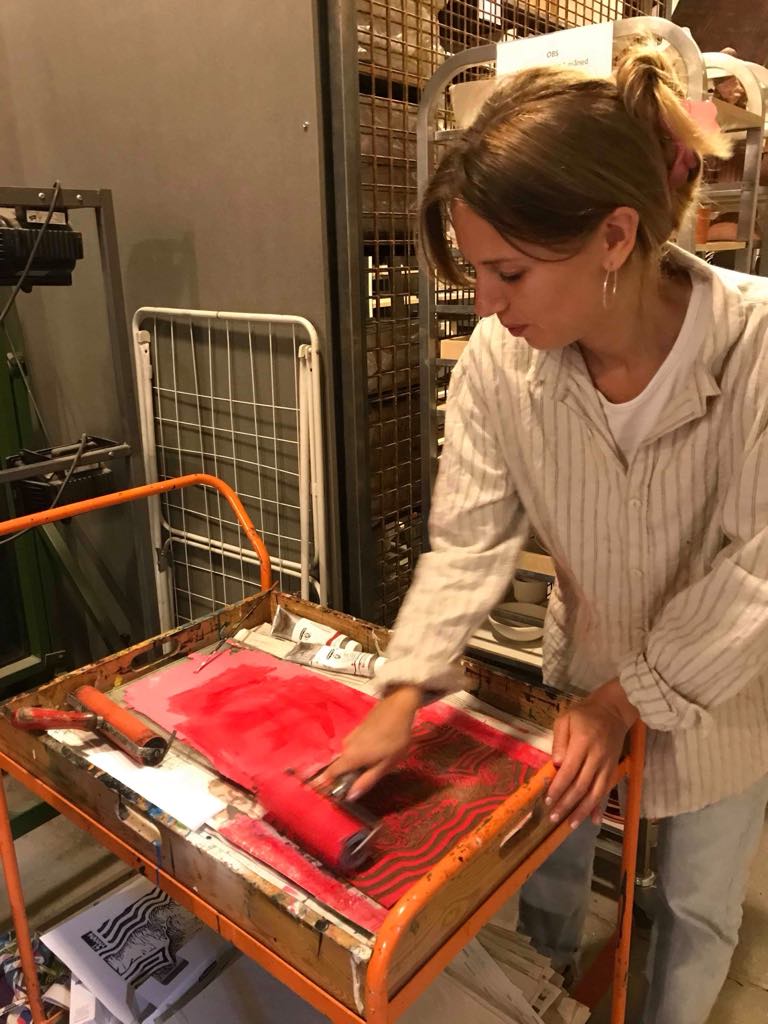 Jeg har lavet linoleumstryk i en del år og er meget glad for det uperfekte og utilregnelige resultat, man får, via denne kunstform. Mine motiver tematiserer den uperfekte menneskekrop, hvor skønne kropsdele som hængepatter og flyveører portrætteres. Samtidig laver jeg også abstraktioner af naturens kurver og former, hvor nogle trykkes uden farve, så et relief dannes.